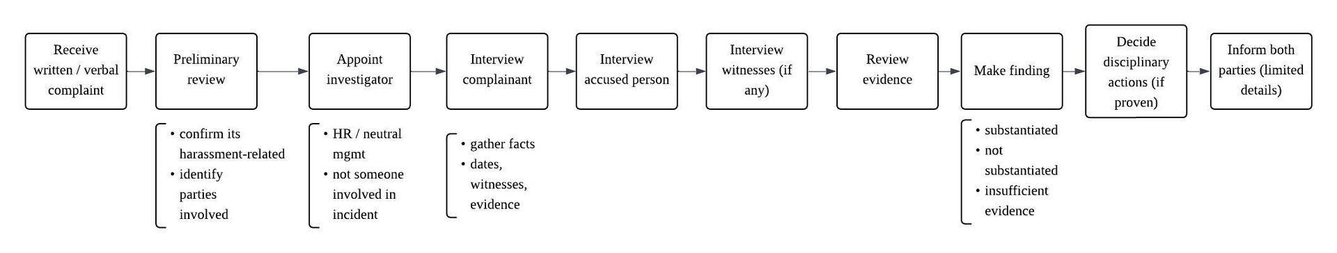 Employer must discipline the offender. Options include: